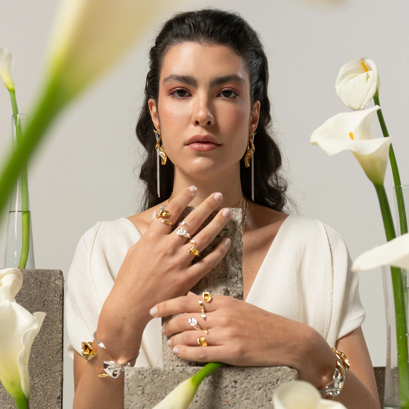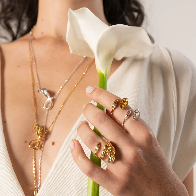 O Anel Copo de Leite traduz a flor em sua expressão mais sutil. Inspirado nas curvas naturais do copo-de-leite, o design envolve o dedo com leveza, como um gesto que acontece sem esforço, essência pura da coleção SOPRO.