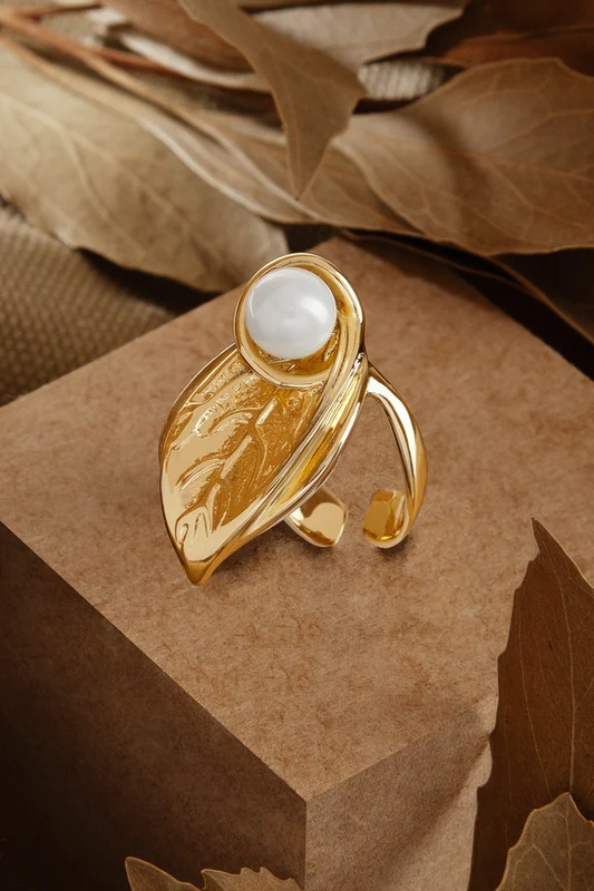 Use o anel Nature pérola folha como peça principal ou em combinações com outros anéis delicados.