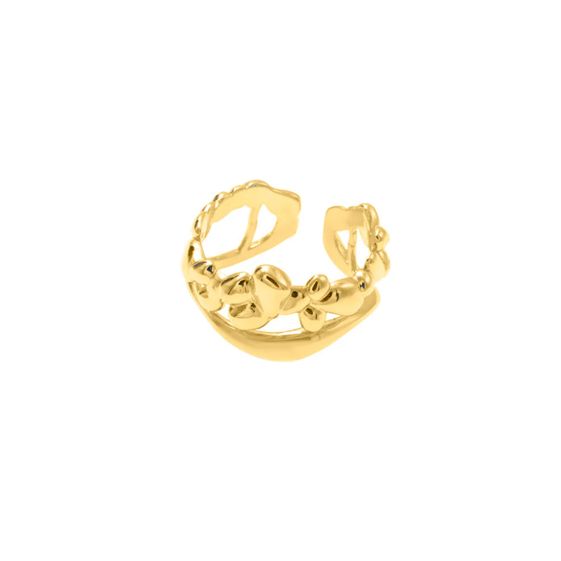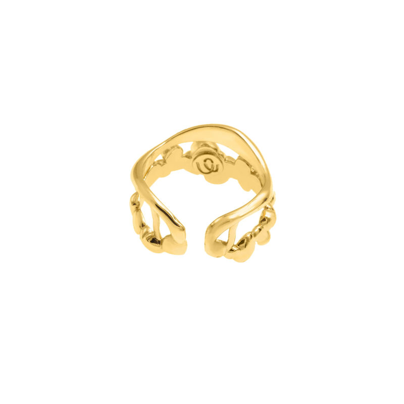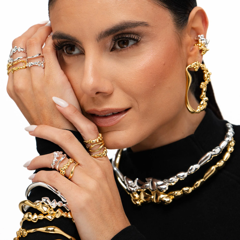 Leve, moderno e cheio de personalidade, o Anel Primórdio traz o efeito visual de um anel duplo em uma única peça. Seu design ajustável, com abertura na parte de trás, garante conforto e versatilidade para se adaptar a você.