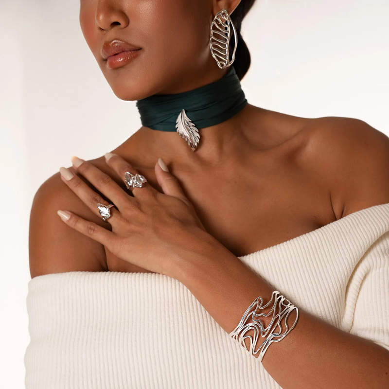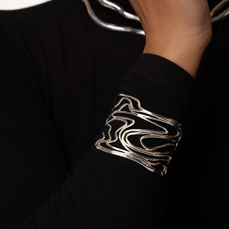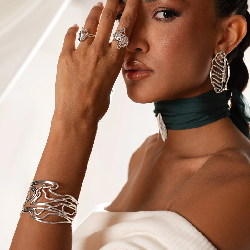 Inspirado na delicada trama da seda, o Bracelete Casulo é uma peça que traduz sofisticação e força em cada curva. Seu design escultural e fluido envolve o pulso com naturalidade, conferindo presença sem excessos.