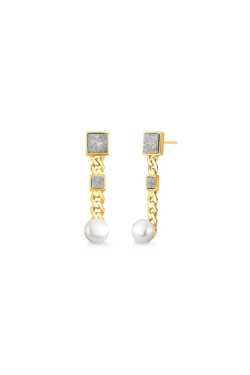 O Brinco Blanc Elegance Maria Dolores ressurge em uma nova versão — uma releitura sofisticada do modelo icônico da marca, agora em tamanho menor, mas com a mesma força estética. Este brinco longo folheado a Ouro traz o equilíbrio perfeito entre elegância e contemporaneidade. Seu design combina o metal rígido em forma de corrente com dois detalhes quadrados em Drusa Metalizada, que conferem brilho e textura à composição. Para finalizar, uma Pérola com um toque de delicadeza atemporal. Uma joia que é a escolha ideal para quem busca versatilidade com impacto. Um brinco clássico e ao mesmo tempo atual, que traduz a tendência da correntaria em uma peça leve, elegante e cheia de personalidade, perfeita para elevar qualquer produção, do casual ao sofisticado.