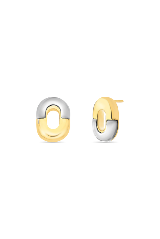 O Brinco Chained Maria Dolores apresenta uma versão mais bold e contemporânea do elo, com volume acentuado e acabamento sofisticado. Um brinco pequeno folheado a Ouro com pedra, pensado para quem valoriza design e presença.