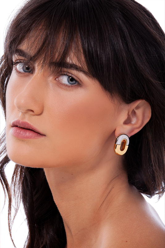 O contraste entre a textura da pedra e o brilho do metal polido equilibra impacto e elegância. Vestindo confortavelmente, o Brinco Chained transita com facilidade entre produções do dia a dia e composições mais elaboradas.