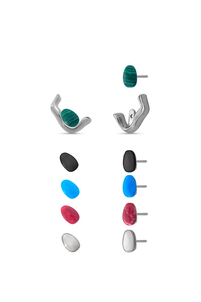 Leve, versátil e com personalidade, o Brinco Identidade Maria Dolores é uma joia que acompanha seu estilo com pontos de cor e leveza elegante. O brinco pequeno folheado a Ouro é composto por uma base de pedra com lapidação cabochão e uma haste em metal com formato orgânico e linhas suaves. A haste se encaixa no pino da base de maneira sutil, criando um traço delicado e contemporâneo que pode ser posicionado para cima ou na diagonal. O modelo acompanha cinco opções de pedras: Feldspato Vermelho, Haulita Turquesa, Obsidiana Preta, Malaquita e Ágata Cinza Metalizada. Cada uma com cor, textura e personalidade únicas. As pedras, em formato arredondado e lapidação cabochão, remetem a pequenas gotas coloridas que se complementam com leveza o lóbulo. O destaque fica por conta da leveza, encaixe fluido e por ser uma peça que permite criar muitas possibilidades: usar com a mesma pedra, criar assimetrias, misturar cores ou usar apenas a base. Uma joia leve, versátil, fluida e criativa, pensada para misturar, combinar e transformar, como um convite para brincar com a sua própria identidade.