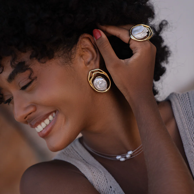Possui pérolas naturais, o que faz com que existam pequenas variações de formato, tonalidade, tamanho e textura entre cada unidade do mesmo modelo.