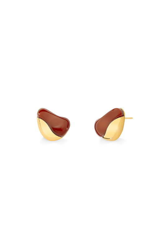 O Brinco Sensatez Maria Dolores é a tradução da leveza em forma de joia. O brinco pequeno folheado a Ouro apresenta um design orgânico e fluido, com uma composição elegante entre a pedra natural Ágata Vermelha e o metal dourado, que se encontram por meio de um detalhe em forma abstrata e delicada — como se um material se dissolvesse no outro.