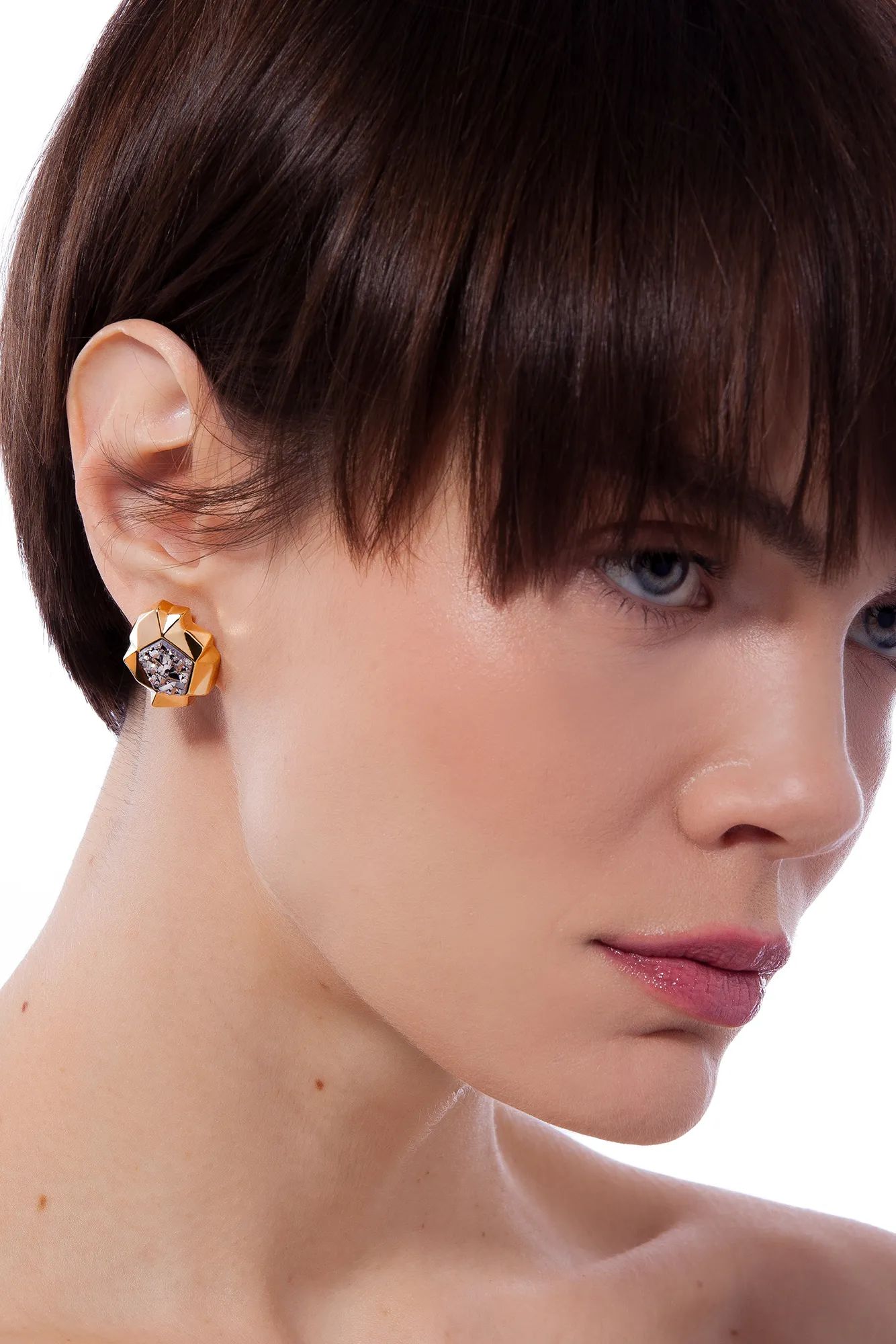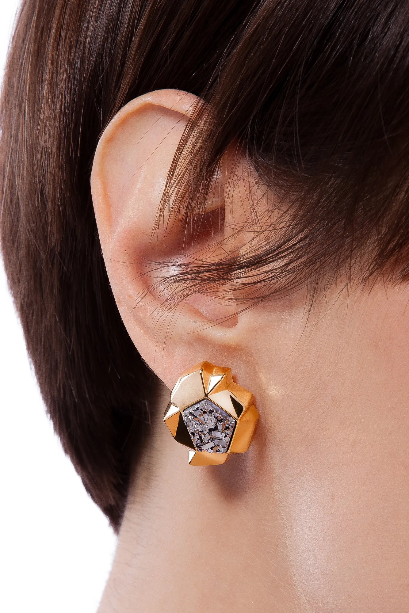 Com dobras marcantes e acabamento facetado, o Brinco Shibui Maria Dolores é a prova de que um acessório pode ser escultural e leve ao mesmo tempo. A composição em camadas cria profundidade e um efeito de luz surpreendente, enquanto a Obsidiana Preta central acrescenta brilho e contraste. Esse brinco pequeno folheado a Ouro destaca-se pelo volume equilibrado e pelo conforto ao vestir, resultado de um design que valoriza proporção e fluidez. Uma peça que imprime impacto com elegância e se adapta a diferentes estilos. O Brinco Shibui é perfeito para quem valoriza joias com personalidade, presença e sofisticação.