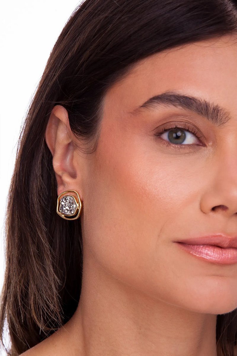 “O tempo tem o poder genuíno de nos transformar porque ele eleva o nosso entendimento da vida. Refresca o saber de quem somos de verdade. A cada ciclo celebramos o tempo vivido e fazemos nascer uma nova história nunca contada, com traços inexplorados, beleza lapidada pelos dias. Reflexos de quem já fomos, para exalar a nossa essência e linhas inusitadas que revelam o que ainda podemos ser. Ícones, o hoje tem algo inesperado.” O Brinco Soleil Baby Maria Dolores é uma releitura do Brinco Soleil, um ícone da marca, celebrado pelo seu design único e especial. Na nova versão, o brinco vem em tamanho menor, folheado a Ouro, composto por uma Drusa Metalizada, em formato orgânico, envolta por metal vazado que acompanha o mesmo formato fluído. Uma peça clássica e sofisticada, que por ter em sua composição uma pedra totalmente natural, suas texturas tornam cada brinco único, perfeito para compor com elegância das combinações básicas às mais elaboradas.