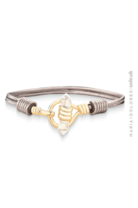 Ferragens banho ouro champagne. Tonalidade intermediária entre o ouro amarelo e o prata, considerada neutra e fácil de combinar.