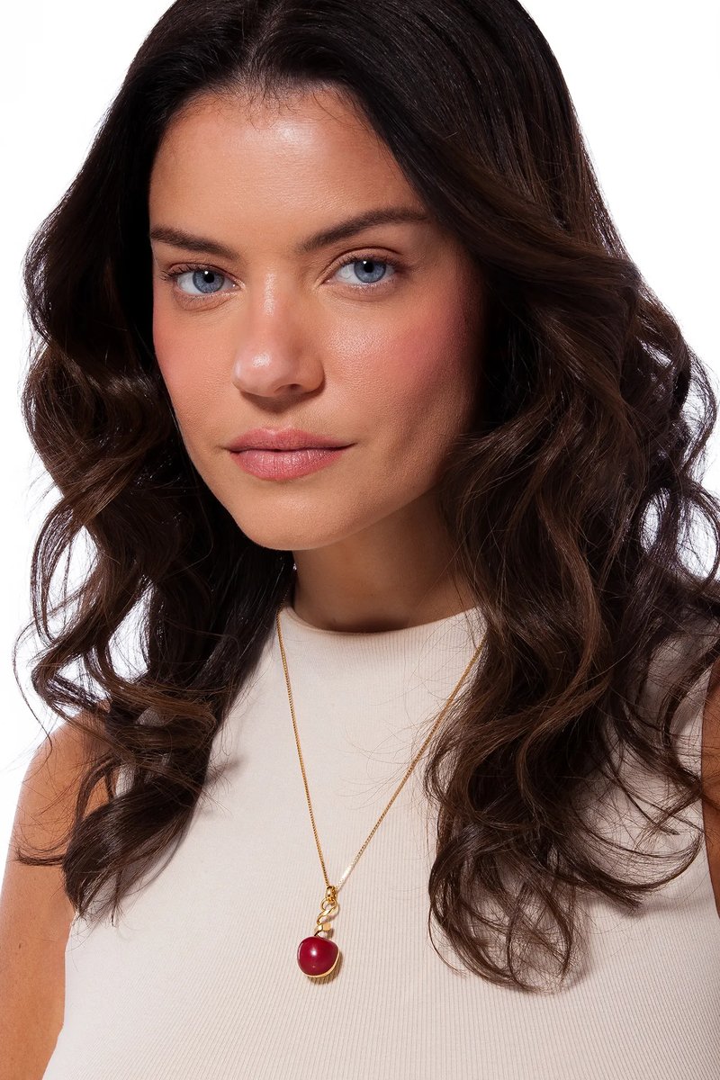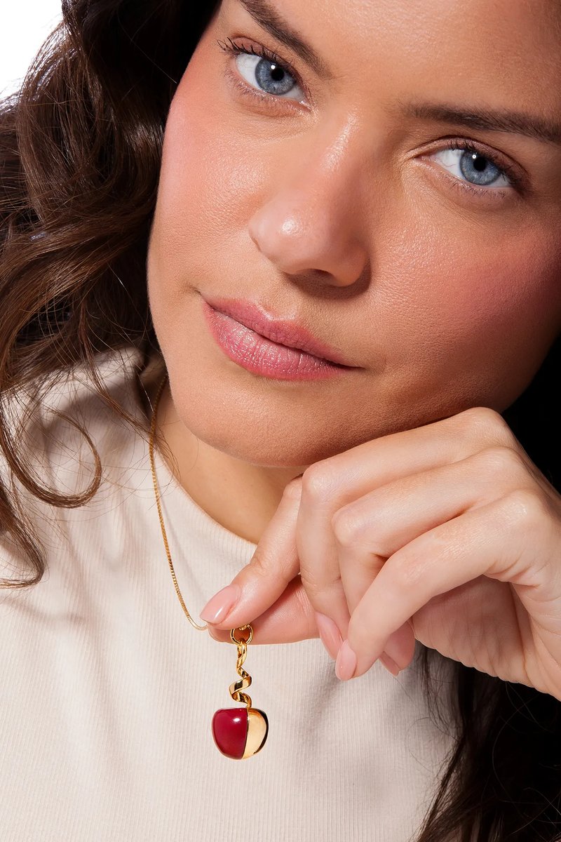 O Colar Amarena Maria Dolores une delicadeza e versatilidade em um só design. A corrente veneziana folheada a Ouro sustenta o pingente com cabinho em espiral e a cereja dupla face: de um lado, resina vermelha intensa; do outro, metal polido. Dois olhares em uma mesma peça, que podem ser escolhidos conforme o styling do dia. Graças ao mecanismo de ajuste, o colar pode ser usado em diferentes comprimentos, adaptando-se a visuais delicados ou marcantes Moderno, leve e marcante, o Colar Amarena traduz a energia vibrante da coleção Dolce Tropicália e conecta-se com o restante das joias da família, permitindo combinações que revelam personalidade em cada detalhe.