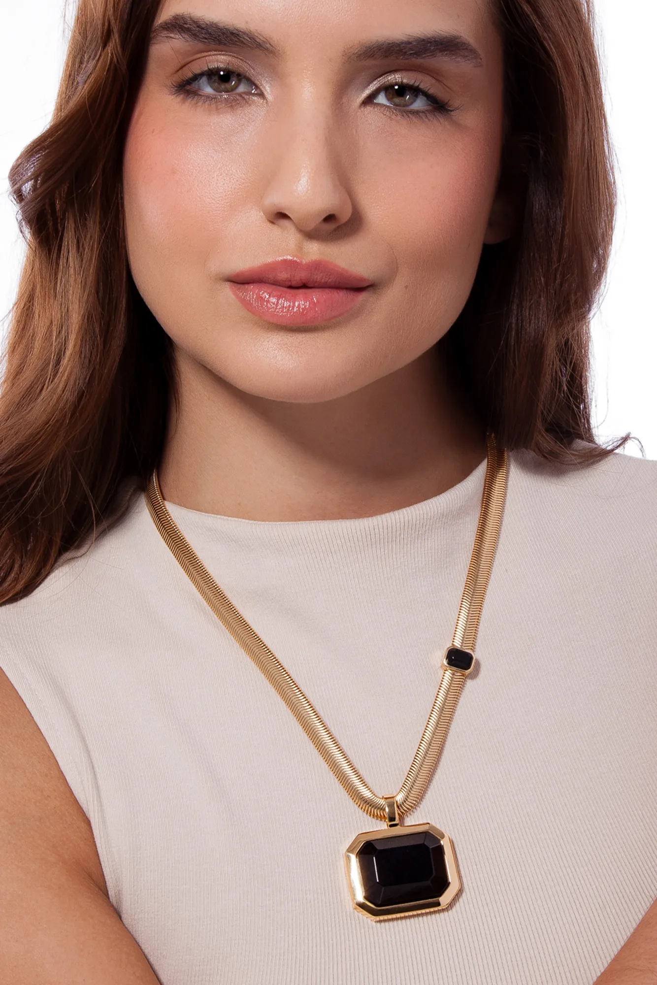 O Colar Petrus Maria Dolores é uma joia que fala por si: poderosa, atemporal e absolutamente protagonista. Com design estruturado e presença marcante, ele representa a essência dos Inéditos: o versátil nada óbvio que veste e transforma o visual com personalidade. O maxi colar folheado a Ouro é composto pela malha snake, com seu caimento impecável e toque sedoso, que acompanha os movimentos do corpo com fluidez. Já o pingente central, emoldurado por um formato quadrado robusto e elegante, traz uma pedra Haulita Turquesa com lapidação especial. Pensando na segurança, o colar possui fecho magnético com trava de encaixe adicional, um detalhe que une praticidade, tecnologia e cuidado em cada etapa do design. O toque final vem em forma de detalhe: uma pequena Haulita Turquesa fixa na lateral da corrente, que valoriza o acabamento e permite que a peça também seja usada como colar curto, mesmo sem o pingente removível. Inspirado pela tradição da joalheria clássica, com ares nostálgicos e linguagem contemporânea, o Colar Petrus é mais do que um acessório: é um marco.
