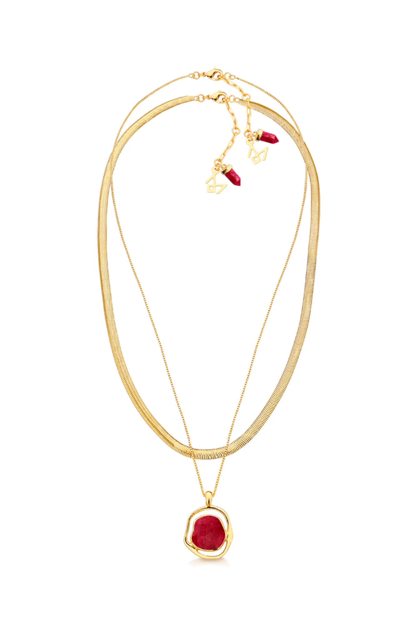 Banho:Ouro Peso:21g Correntes:Malha Snake e Veneziana Tamanho corrente curta:42cm Tamanho corrente longa:52cm Estrutura:Maleável Fecho:Gravatinha Dimensões pingente:2,0cm x 1,8cm Circunferência pedra:1,2cm